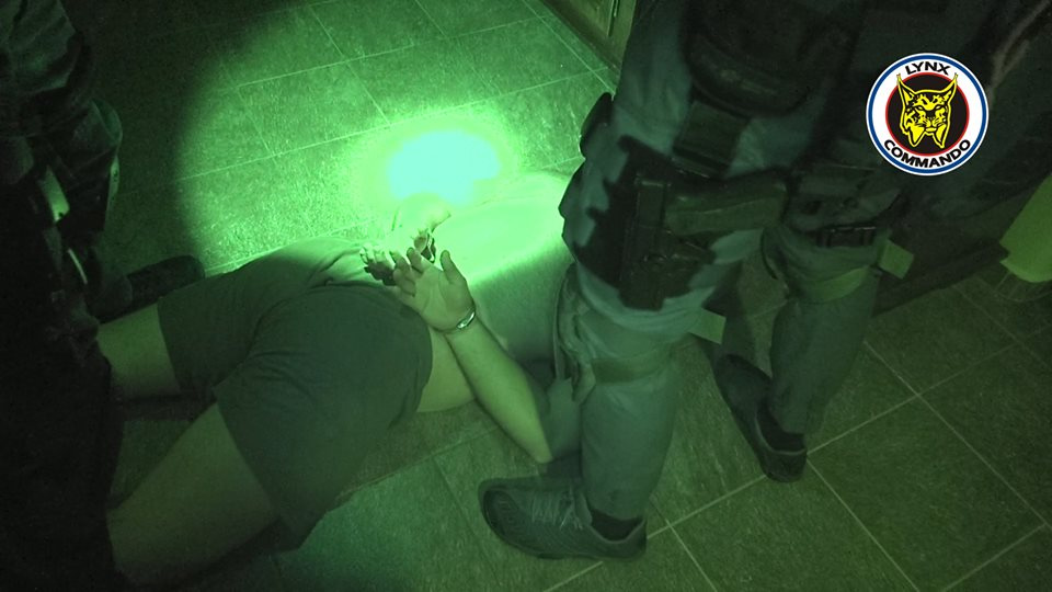 A házkutatást az egykori gútai rendőrnél Szabó Tamásnál volt, aki korábban a komáromi rendőrkapitányságon dolgozott nyomozóként. A gyanúsított kerékpáron próbált elmenekülni a hatóságok elől. A helyszínen nyolc embert vettek őrizetbe.